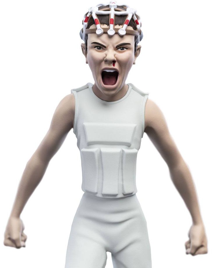 Stiliserad figur av Eleven från säsong 4 av Stranger Things klädd i en haptic suit och neural helmet. Ca. 15 cm hög och skulpterad av Weta Workshop 3D skulptör, Jorgelina Yeme.