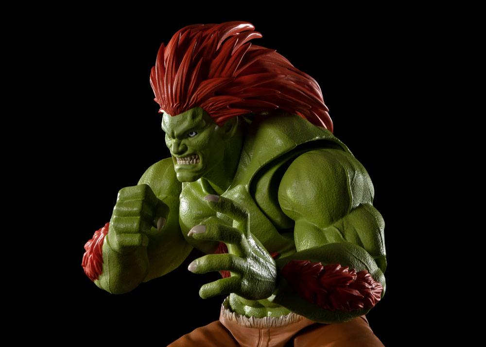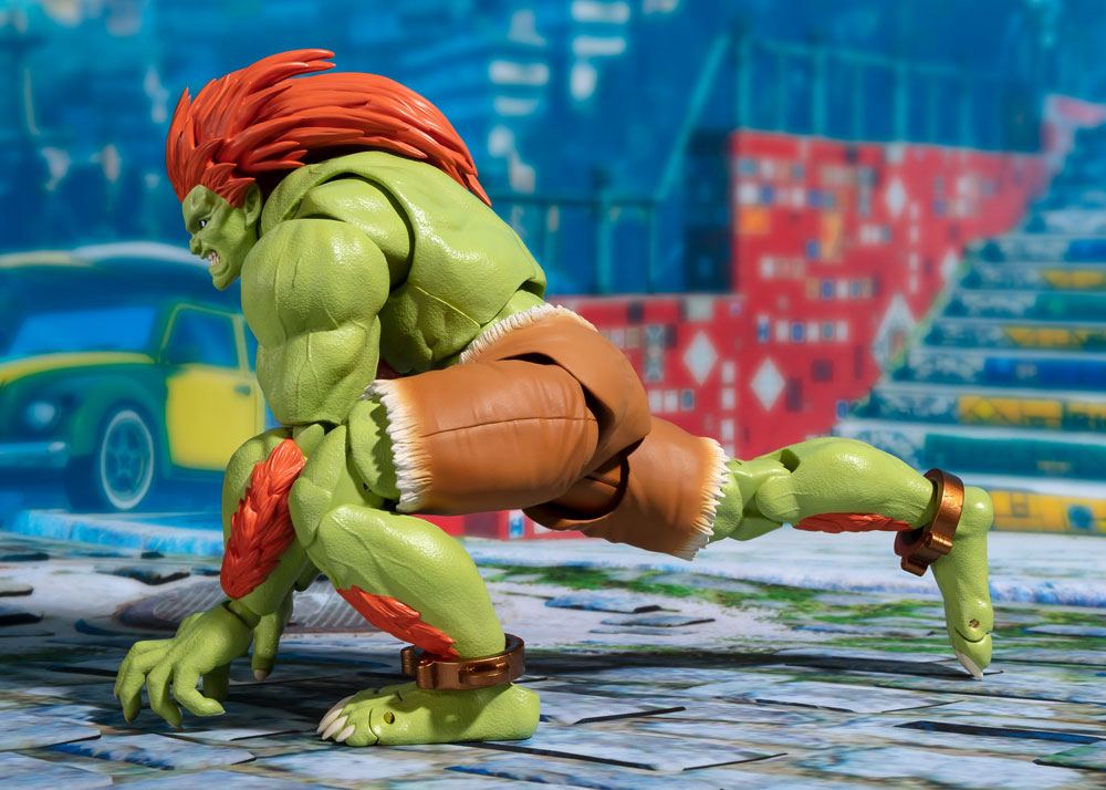 Blanka, the monster from the Street Fighter series, joins S.H.Figurarts with an exquisitely sculpted portrayal that even captures his trademark electric attack! The set includes one optional face, optional hands, electric thunder effects, an effect stand, and a display stand!