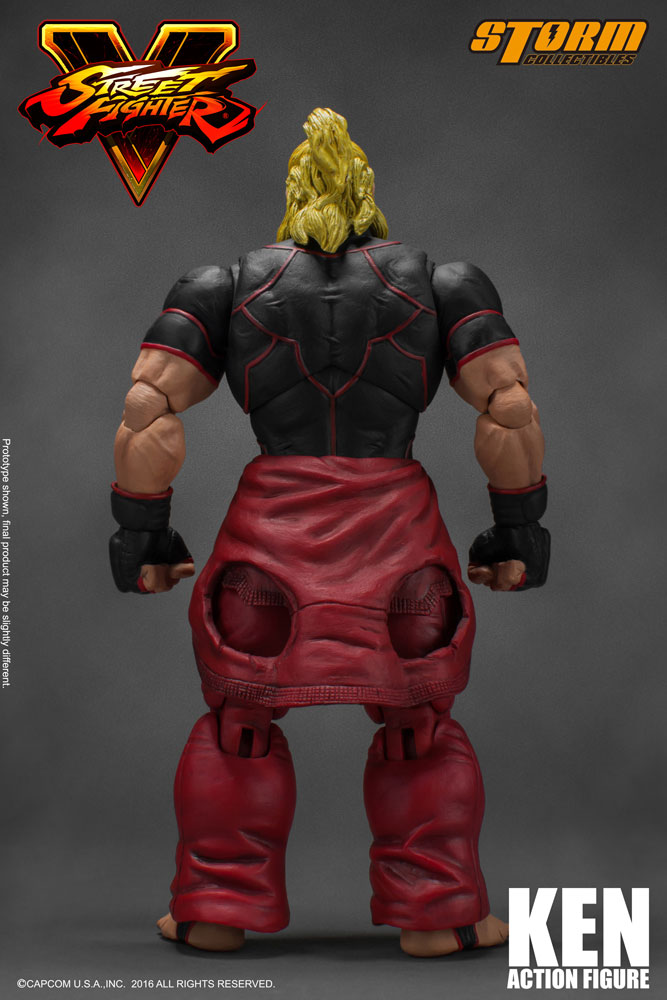 Storm Collectibles is honoured to work with Capcom to produce a series of the world most popular combat video game - Street Fighter, for high quality 1:12 scale action figure. Our third upcoming character for Street Fighter V series is Ken Masters. Street Fighter V has created a brand new look for Ken - his hair has tied back, the half-off red karate gi is topped with a black v neck training shirt, his feet wears black ankle wraps and also his new play style - these new designs are the first time appeared in Ken from all previous Street Fighter series.