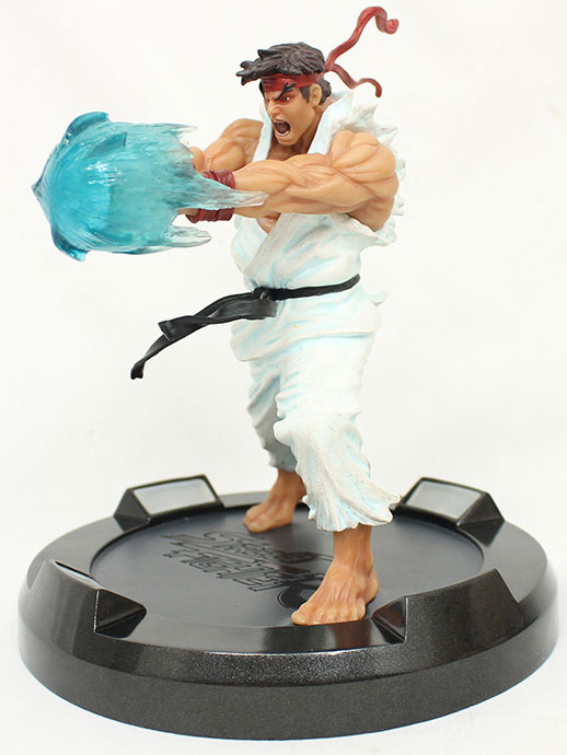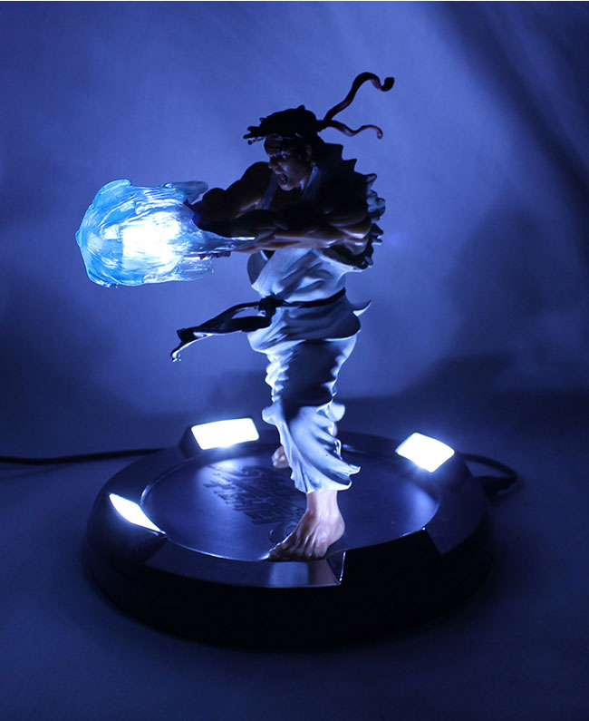 This high end statue presents Ryu in his classic fight pose throwing a realistic LED-lit Hadoken fireball that has 4 different light options (ON, OFF, SLOW PULSE, and FAST PULSE)