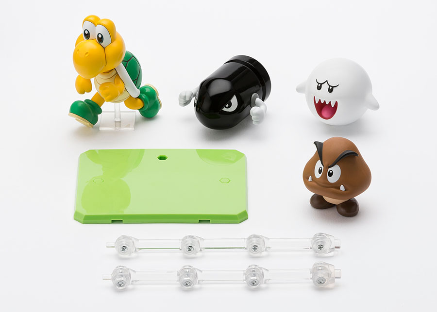What's a video game without some villains? From Tamashii Nations comes the perfectly villainous (and dare we say adorable) Diorama Play Set D from the S.H.Figuarts Super Mario line. Avoid the Koopa Troopa! Evade the Goomba! Outsmart Boo! Run from Bullet Bill! If you can... Take your Mario collection to the next level. Set also includes 3 support posts and a display base.