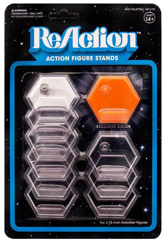 Pack of 10 featuring 9 clear stands and 1 random "exclusive" colored stand. Fits all Super7 3 3/4-inch ReAction Figures!