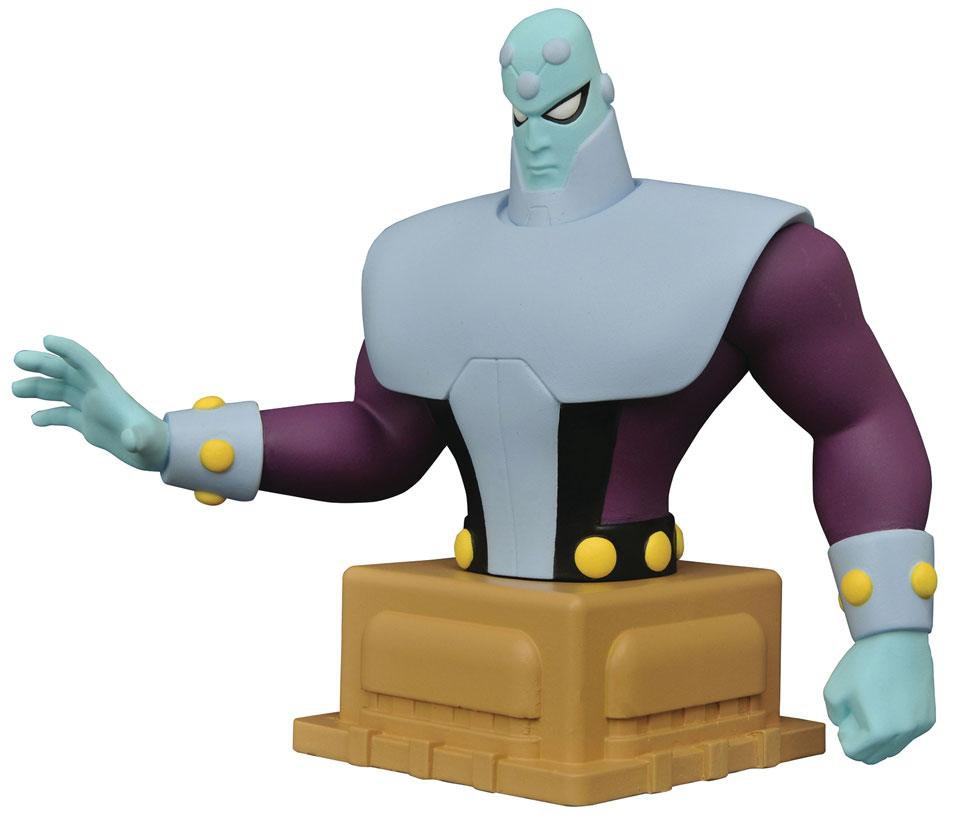 The DC Animated Universe bust series continues with one of Superman's greatest villains! Brainiac, the Kryptonian supercomputer without compassion, is now the latest 15 cm resin bust to be offered, posed atop a pedestal inspired by the architecture of Metropolis. Packaged in a full-color box, this bust is limited to only 3,000 pieces and comes with a hand-numbered certificate of authenticity. Sculpted by Varner Studios!