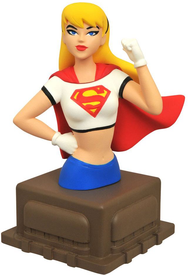 Criminals of Metropolis beware! While she may not truly be Superman's cousin, Kara In-Ze hails from same region of space, making her strong, fast and tough under Earth's yellow sun. So think twice before committing a crime within the city limits! This approximately 15 cm resin bust depicts Supergirl as she appeared on Superman: The Animated Series, striking a confident pose atop an architectural base. The bust comes with a certificate of authenticity in a full-color box. Sculpted by Steve Varner Studios!