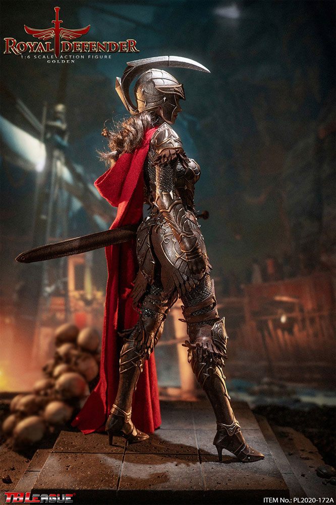This beautiful figure features a TBLeague female seamless body with an internal metal skeleton for posing, a head sculpt with long rooted hair, and a full fabric outfit with a set of armor. Don't miss your chance to add this gorgeous Royal Defender figure in golden armor to your collection!
