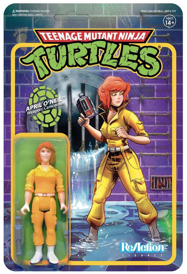 Cowabunga! The Teenage Mutant Ninja Turtles join Super7's 3.75-inch ReAction Figure world! April comes armed with a throwing star and her trusty camcorder on a card back featuring brand new art by Turbopork.