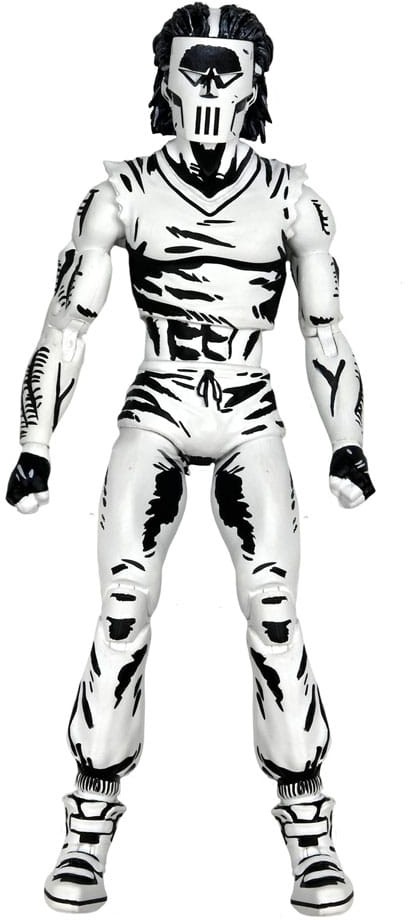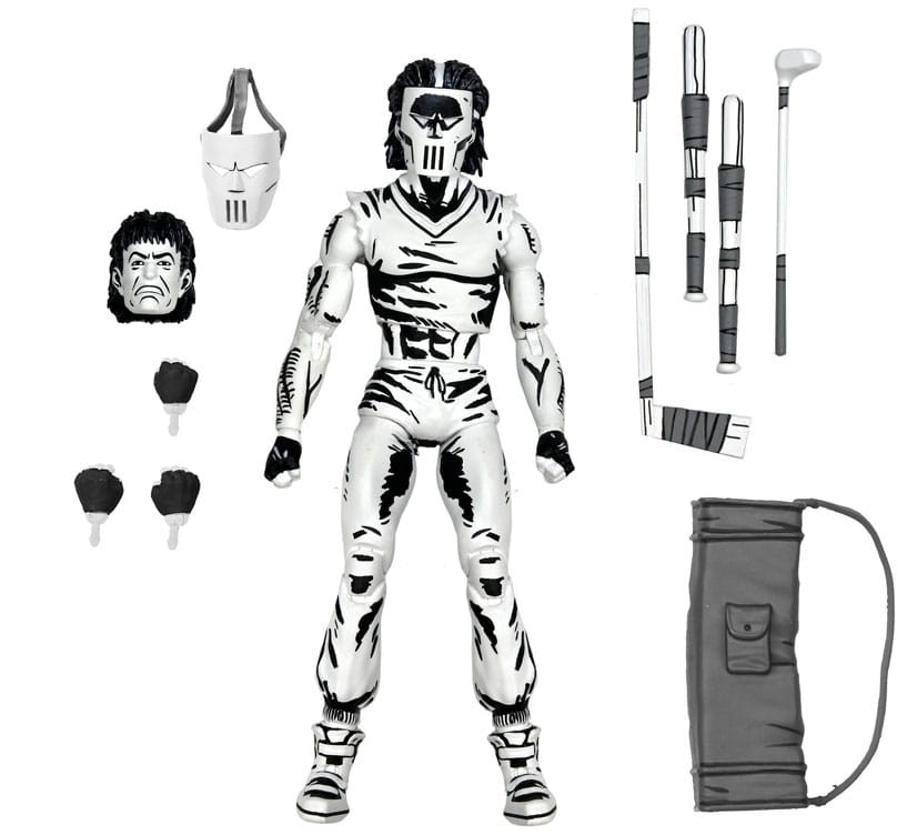 Casey har en svartvit färgdekor för ett autentiskt serietidningsutseende och innehåller utbytbara huvuden och händer, plus hockeymask, golfbag, slagträn, hockeyklubba och golfklubba!