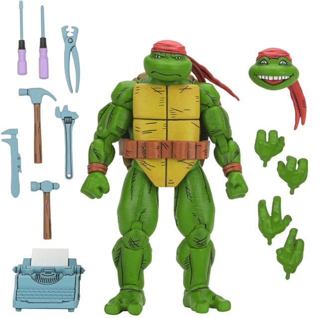 Based on his appearance in issue #11, Handyman Donatello is ready to join your collection! Standing in 7-inch scale, this NECA action figure includes extra heads and hands, tools and tool belt, and typewriter.