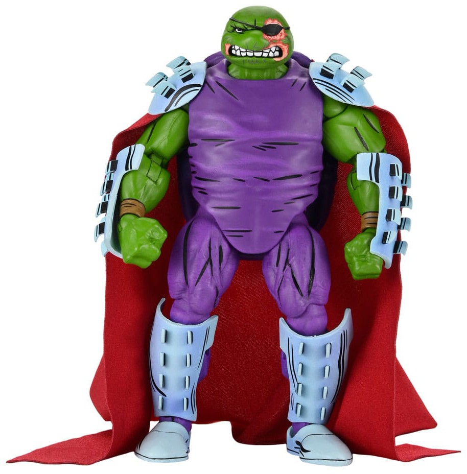 As seen in Eastman & Laird's Teenage Mutant Ninja Turtles comic books from Mirage Studios! Raphael takes the mantle of The Shredder with an all-new sculpt from NECA. This 7-inch scale action figure includes two heads (damaged and angry eyepatch). Plus, a soft goods cape, removable helmet, extra hands, sais, pitcher, and glass. Comes in collector-friendly packaging with original artwork by Kevin Eastman.