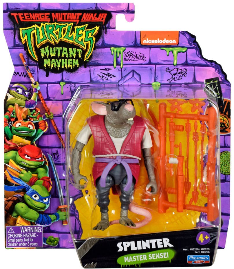 - Accessories: Splinter is ready for battle with his iconic walking stick with knife and a weapon rack with various accessories!