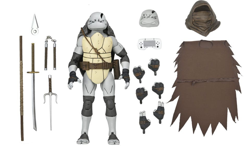 Dessutom medföljer ett handhållet spel, kunai och sköldpaddornas klassiska vapen.