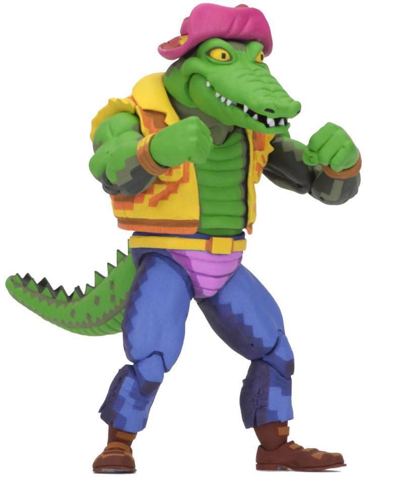Leatherhead is equipped with his throwing knife to keep the turtles at bay.