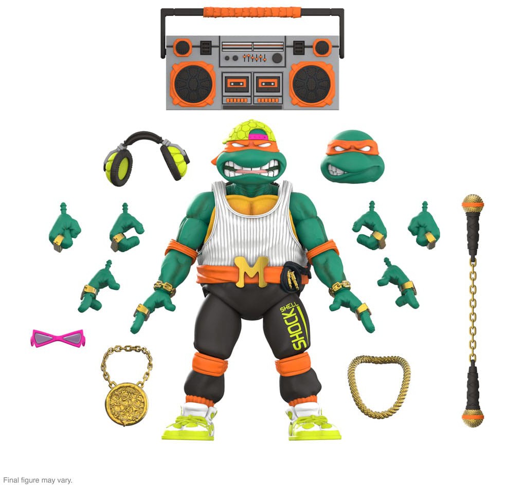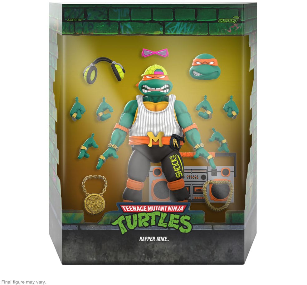 ULTIMATES! Rappin' Mike features intricate sculpt and premium paint detail, an array of interchangeable heads and hands, and an assortment of accessories including a pair of gold chains, a boom box, microphone