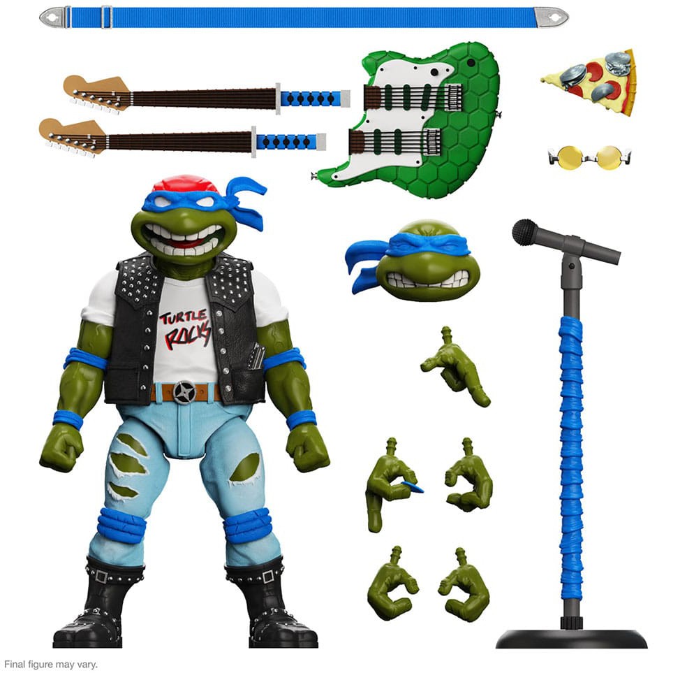 in the way! This 7" scale Teenage Mutant Ninja Turtles ULTIMATES! Classic Rocker Leo features multiple interchangeable heads, hands, and accessories, including a guitar with removable necks that double as swords. Rockin' the made-to-order ULTIMATES! Classic Rocker Leo figure is a sure-fire way to take your collection to the top of the charts!