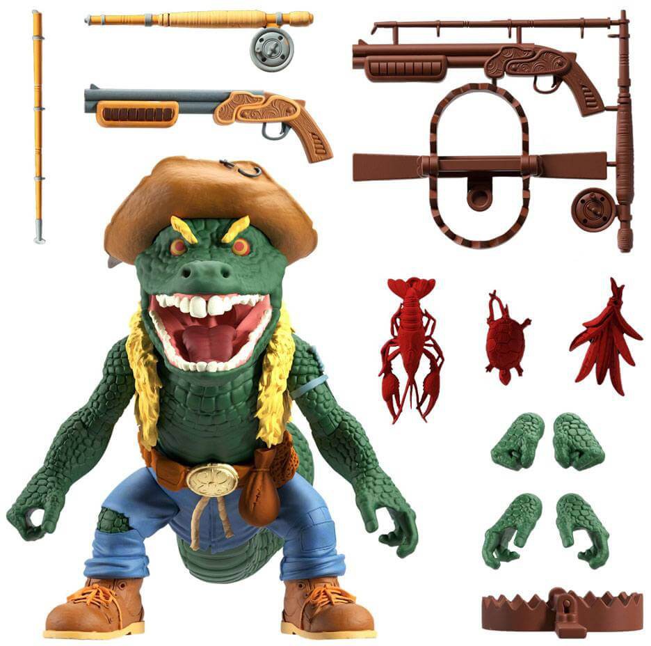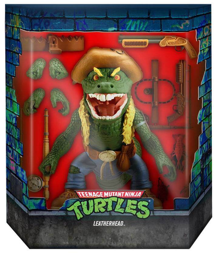 Leatherhead, denna krokodilmutant, vill inget hellre än att hämnas på Ninja Turtles! Denna 18 cm höga helt ledade Leatherhead ULTIMATES! -Figur kommer med utbytbara händer, hans Jumbo Gumbo-bälte, ett vapenställ med ett flugfiskespö, Turtle Trap och en Swamp Gun.