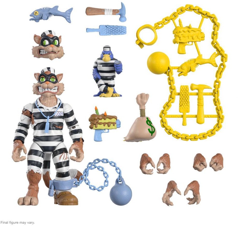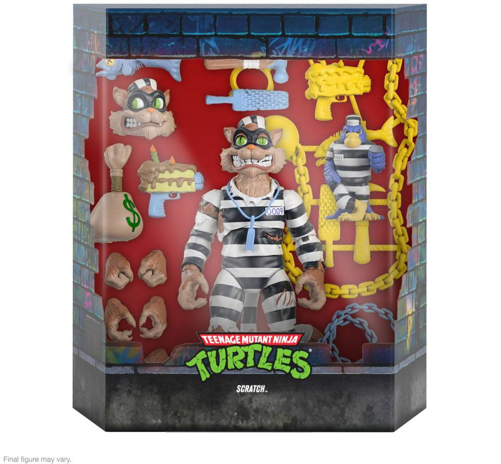 This 7" scale fully articulated Teenage Mutant Ninja Turtles ULTIMATES! figure of Scratch features a VERY well-worn convict's uniform and comes with interchangeable heads and hands, his swindlin' sidekick Jail Bird, and a weapon rack full of enough tools to escape from nine prisons. Scratch collectibles are rarer than an uncooked steak, so it'd be downright criminal if you missed this chance to add the Teenage Mutant Ninja Turtles ULTIMATES! figure of Scratch to your collection!