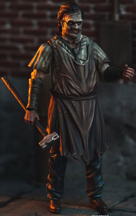 This new 1/18 scale Leatherface stands at 4.33 inches tall with 15 points of articulation, all details based on Texas Chainsaw Massacre(2003), faithfully reproduces Leatherface's hair and his mask from the 2003 film. Leatherface's hand grips a hammer, and the clothes and apron are heavily stain painted to recreate the atmosphere of the film. Accessories include 1x interchangeable hand and a chainsaw, which is meticulously painted with rusted paint to further enhance the figure's realism pose and dynamically recreate your favorite scenes.