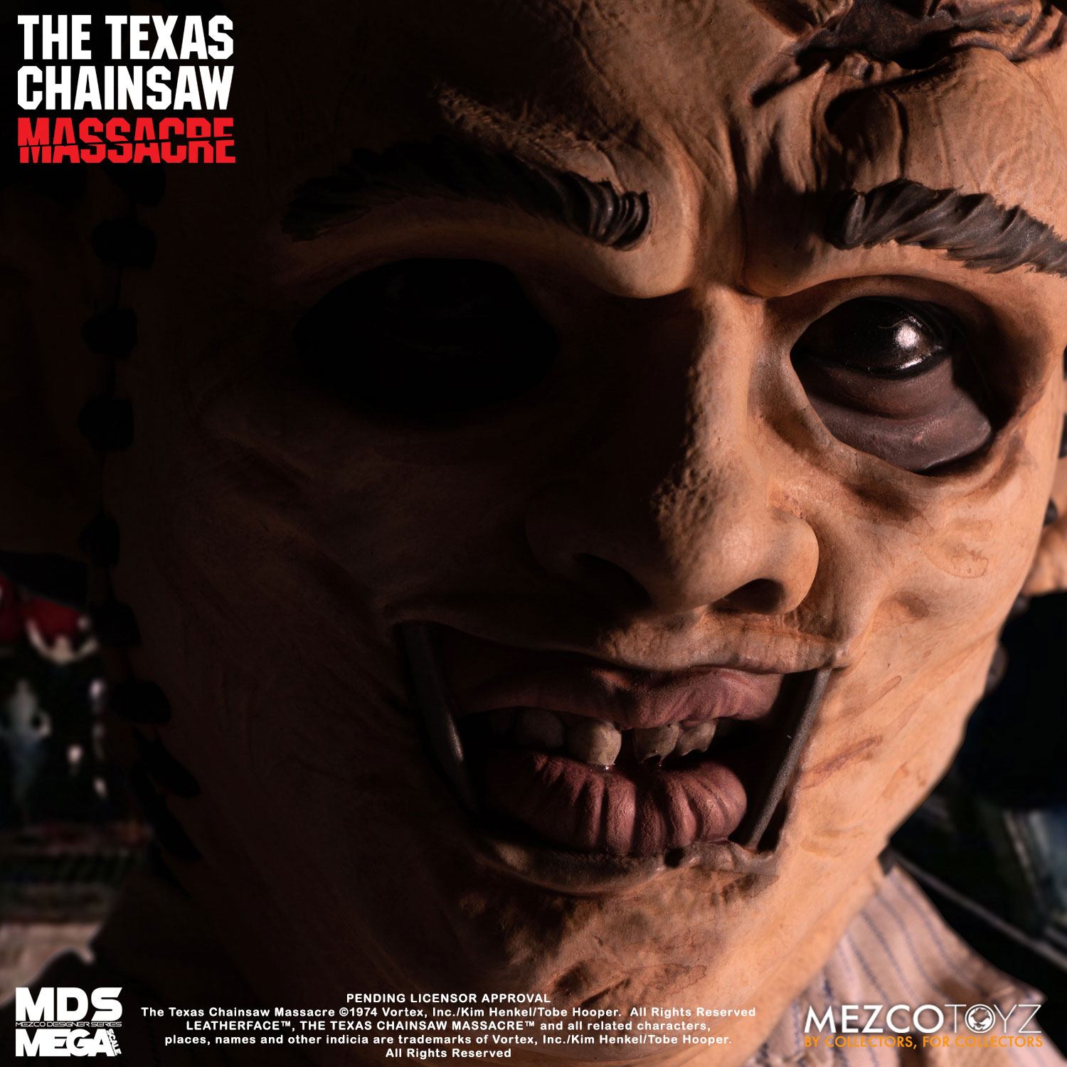 Leatherface är cirka 15 tum lång och har 11 artikuleringspunkter. Han kommer förpackad i en fönsterkartong, perfekt för display.