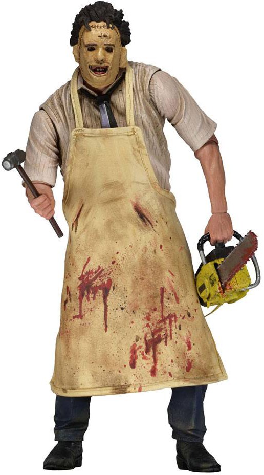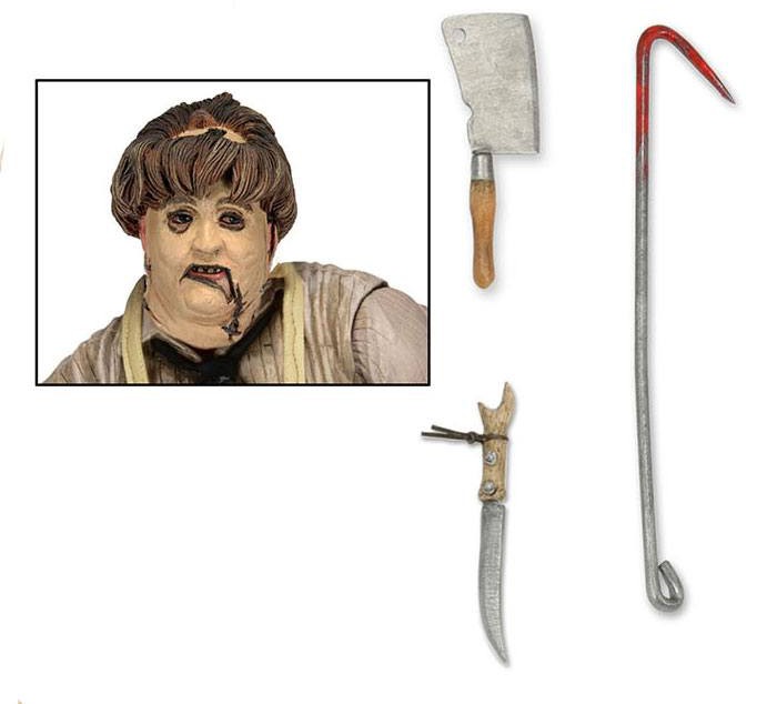 Den 7-tums skalan har fått en helt ny kropp med över 25 artikuleringspunkter, plus 2 lika grymma utbytbara huvuden. Leatherface levereras med motorsåg, kniv, klubba, köttkrok, köttyxa och vinylförkläde. Förpackad i en Deluxe 40th Anniversary fönsterkartong.