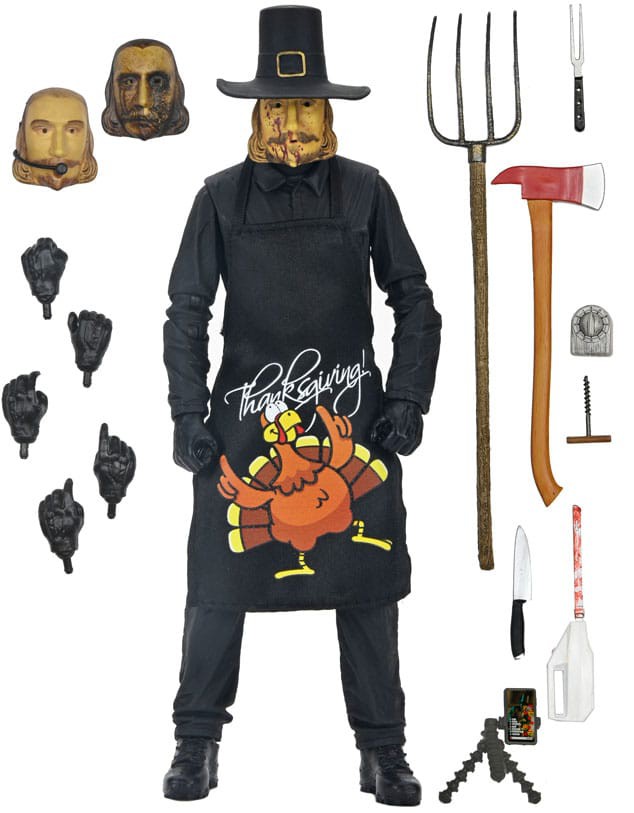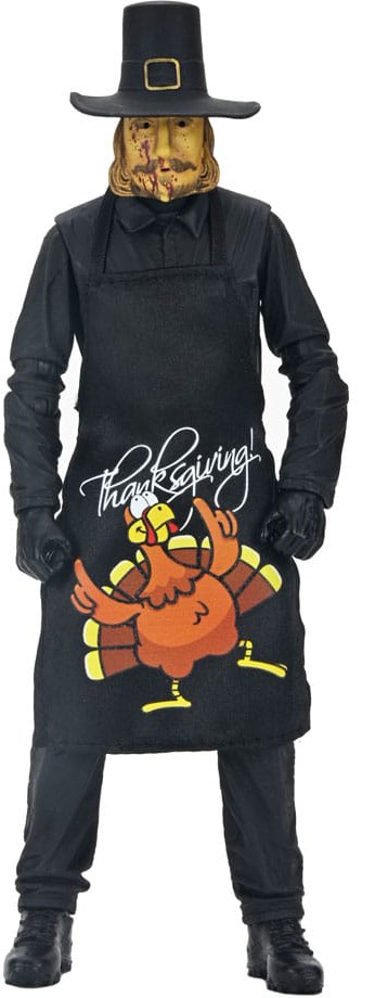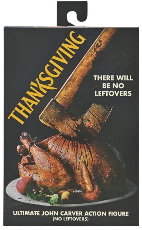 Från Eli Roths slasherhit från 2023, Thanksgiving, kommer en andra Ultimate actionfigur av helgmördaren! John Carver tar på sig sitt kalkonförkläde och är redo att laga en oförglömlig fest med en mängd nya tillbehör. Denna ledade figur innehåller ett mjukt förkläde, utbytbar mask med mikrofon, blodig mask, smält mask, yxa, elektrisk skärare, matlagningstimer, mobiltelefon på stativ, högaffel, kökskniv, carvinggaffel och korkskruv. Dessutom flera utbytbara händer för att hålla i hans många okonventionella vapen! Levereras i samlarvänlig fönsterförpackning med öppningsbar frontflik.