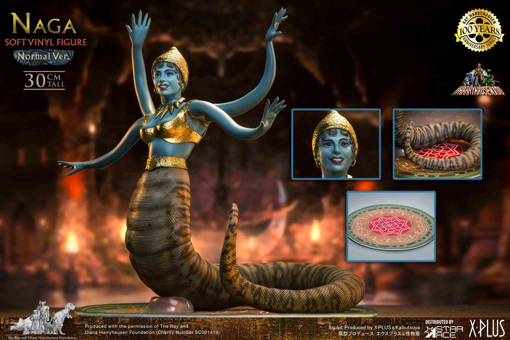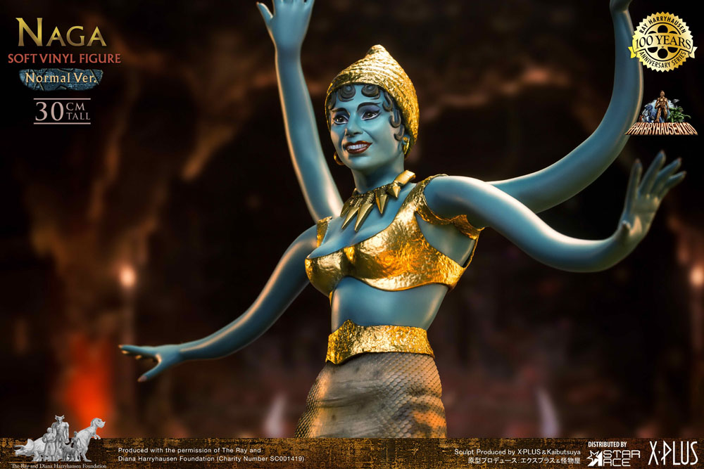 Star Ace has recreated the Harryhausen puppet as a 30cm tall soft vinyl statue, posed in mid-dance with her four snake like arms extended in all directions. The lower snake portion of her body is detailed with realistic snakeskin texture, and she sits on a base that simulates the exotic carpet of the sultan's palace.