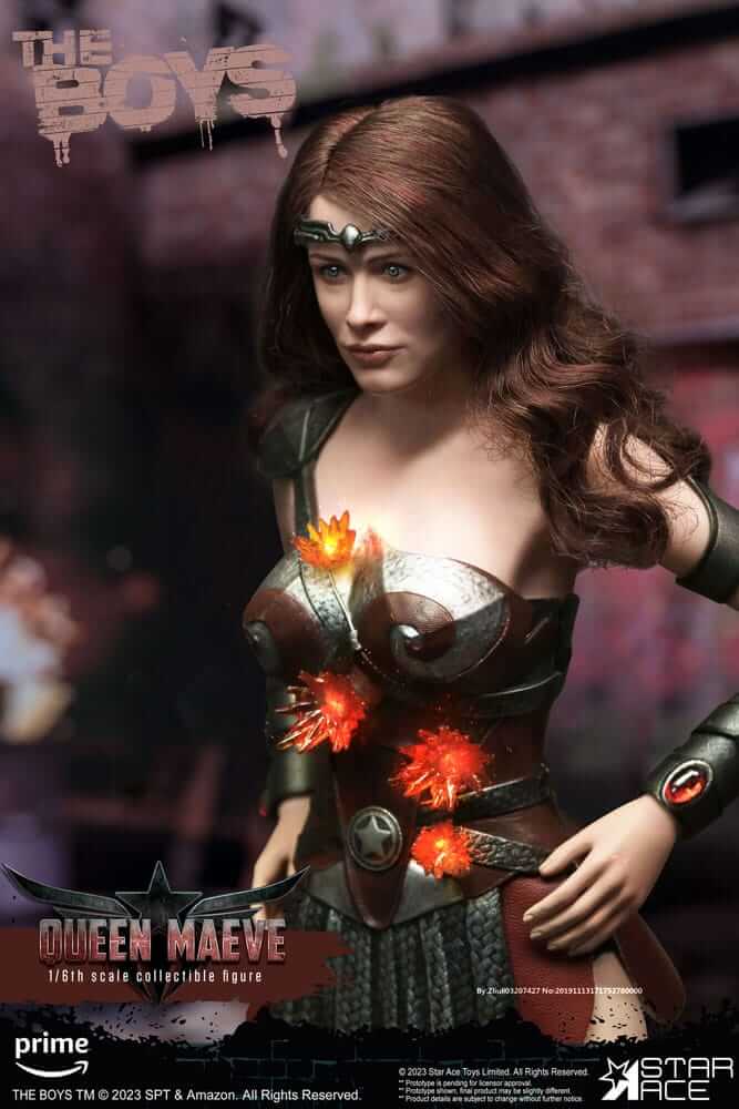 This 1/6th scale figure of Queen Maeve features a seamless body and has over 30 points of articulation. The headsculpt features an officially approved authentic likeness of Dominique McElligott as Queen Maeve with rooted hair. She is wearing a detailed costume and carries her signature sword.