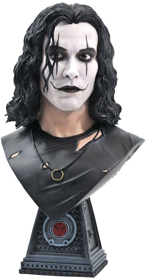 Legends never die! The legendary star of the legendary film is now the newest Legend in 3D - it's Eric Draven from The Crow! Measuring approximately 10" tall atop a rooftop-styled pedestal, this 1/2 scale bust of Eric features the likeness of actor Brandon Lee, and features detailed sculpting and paint applications. Limited to only 1,000 pieces, it comes packaged in a full-color box with a numbered certificate of authenticity. Designed by Joe Allard, sculpted by Rocco Tartamella!