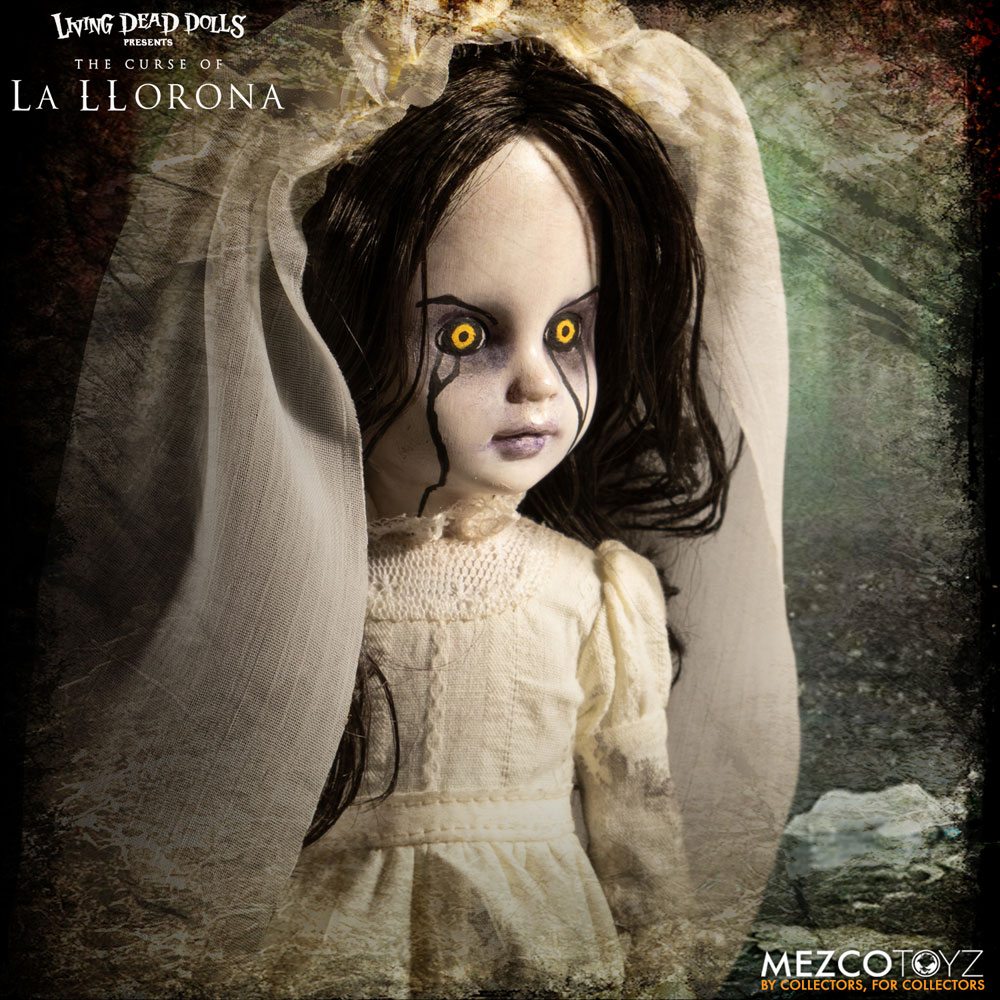 La Llorona joins the Living Dead Dolls family and wears her infamous white gown with black, curly hair peaking out from her veil. She cries black tears as she searches desperately for her children,