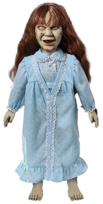 Djävulen finns i detaljerna! Regan är klädd i sitt blåa nattlinne och har hemskt verklighetstrogna drag som fångar hennes demoniska uttryck - gulnade ögon, sprucken hud och ett djävulskt flin. Hon är ca 46 cm hög och har skulpterade delar på en mjuk plyschkropp.