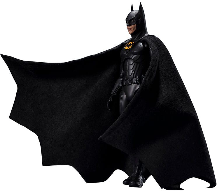 As seen in the movie "The Flash," Batman joins S.H.Figuarts! Flexible wires incorporated into the flexible cape allow for dramatic posing, and a face modeled on actor Michael Keaton's portrayal of Bruce Wayne is included!