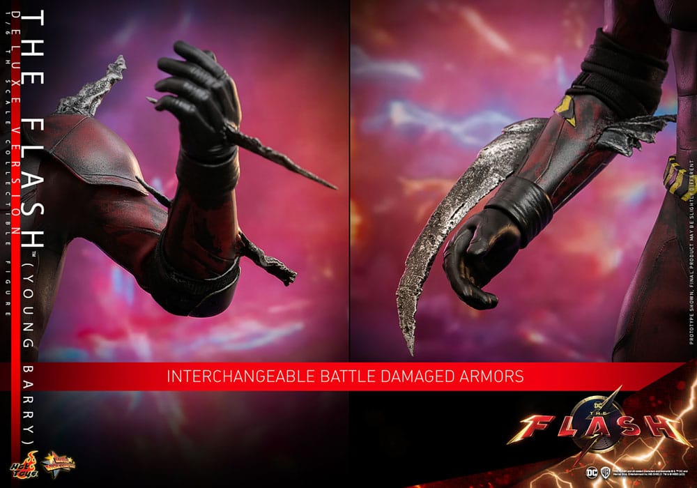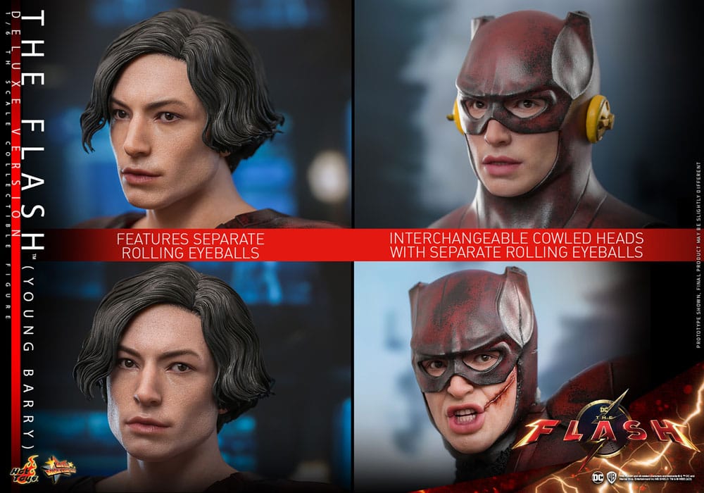 Den mycket exakta figuren fångade The Flash / Young Barry i sjätte skalan har två nyutvecklade huvuden, ett i standardform och ett som visar hans stridsskadade utseende, med båda huvudena som kommer med separat rullande ögonbollssystem. Figuren levereras med tre utbytbara underansikten för fler uttryck. Hans dräkt har återskapats och målats för att fånga detaljerna i hans provisoriska dräkt, ner till en sprayad logotyp på bröstet och varningsband runt midjan. Figuren innehåller också ett headset och en specialdesignad figurbas med LED-ljusfunktion.