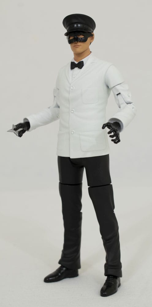 Justice is served! Outfitted in his white valet jacket, Kato is no less deadly an opponent, as depicted in this approximately 7", 1/10 scale action figure. Featuring over 16 points of articulation as well as multiple weapons and interchangeable parts, this Kato figure features the likeness of actor Bruce Lee and comes packaged in a full-color window box. Designed by Yuri Timg, sculpted by Chris Dahlberg!