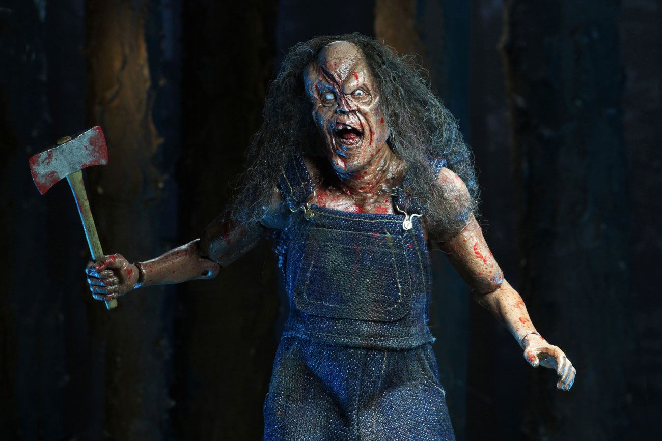 After years roaming the swamps of New Orleans and claiming victims, the supernatural slasher and main antagonist of the Hatchet series, Victor Crowley makes his action figure debut in NECA's 8" Clothed figure line. His gruesome head sculpt features rooted hair and the axe wound left by his father. Standing at approximately 8" tall, Victor Crowley wears his battered overalls made with real fabric and is equipped with a belt sander, and double sided axe.