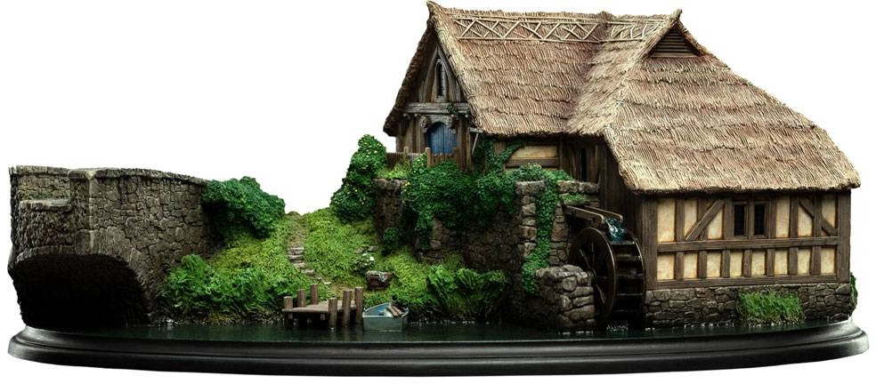 Across the stream from the Green Dragon Inn in Hobbiton, Ted Sandyman's mill perches on the water's edge next to a stony bridge. Behind its blue door, gears driven by the steady turning of a water wheel grind grains for the making of bread, a favourite food no Hobbit accustomed to the comforts of the Shire can long go without.