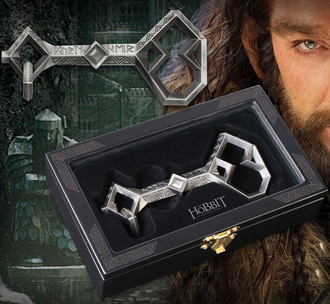En 14 cm reproduktion av nyckeln till bakdörren till Erebor. Nyckeln som ger Bilbo tillgång till berget och drakens hamstring. Levereras i en presentförpackning från Hobbit.