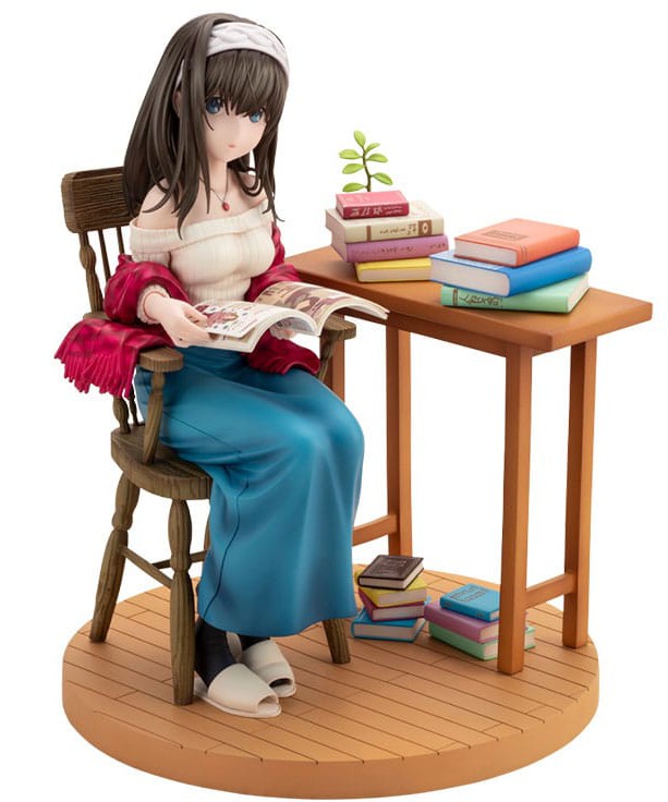 This figure brings her to life straight from a scene in the "[Instant Allurement] Fumika Sagisawa" story, where she reads up on Valentine's Day in her study.
