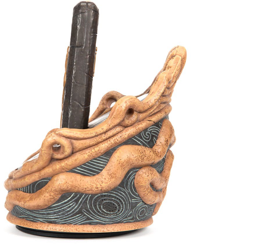 The Sheikah Slate in The Legend of Zelda: Breath of the Wild is a mystical, multifunctional tool that plays a central role in the game. As Link's indispensable device, it aids him in solving puzzles, battling foes, and exploring the vast landscapes of Hyrule. The Legend of Zelda: Breath of the Wild - Sheikah Slate statue is a life-size high-quality resin collectible. It faithfully captures the intricate details of the Sheikah Slate, from the iconic eye (the crest of the Sheikah), to the markings and tablet's texture. The tablet rests on a meticulously detailed base and can be detached.