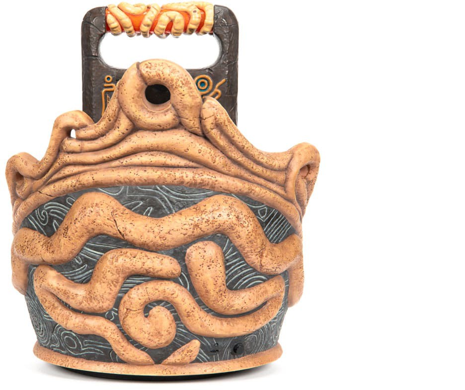 Sheikah Slate i The Legend of Zelda: Breath of the Wild är ett mystiskt, multifunktionellt verktyg som spelar en central roll i spelet. Som Links oumbärliga redskap hjälper den honom att lösa pussel, bekämpa fiender och utforska de vidsträckta landskapen i Hyrule. The Legend of Zelda: Breath of the Wild - Sheikah Slate staty är ett samlarobjekt i naturlig storlek av högkvalitativ harts. Den återger troget de invecklade detaljerna i Sheikah Slate, från det ikoniska ögat (Sheikahs vapen), till markeringarna och tavlans textur. Tavlan vilar på en noggrant detaljerad bas och kan tas loss.