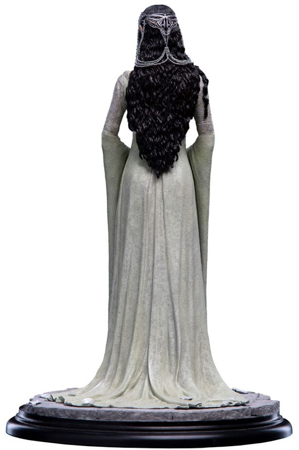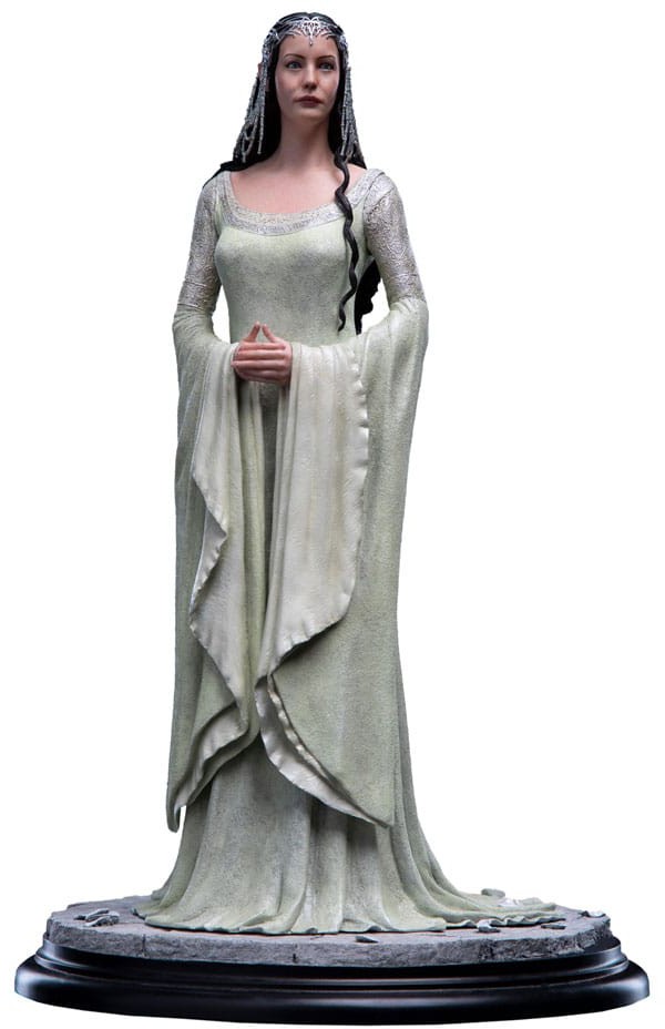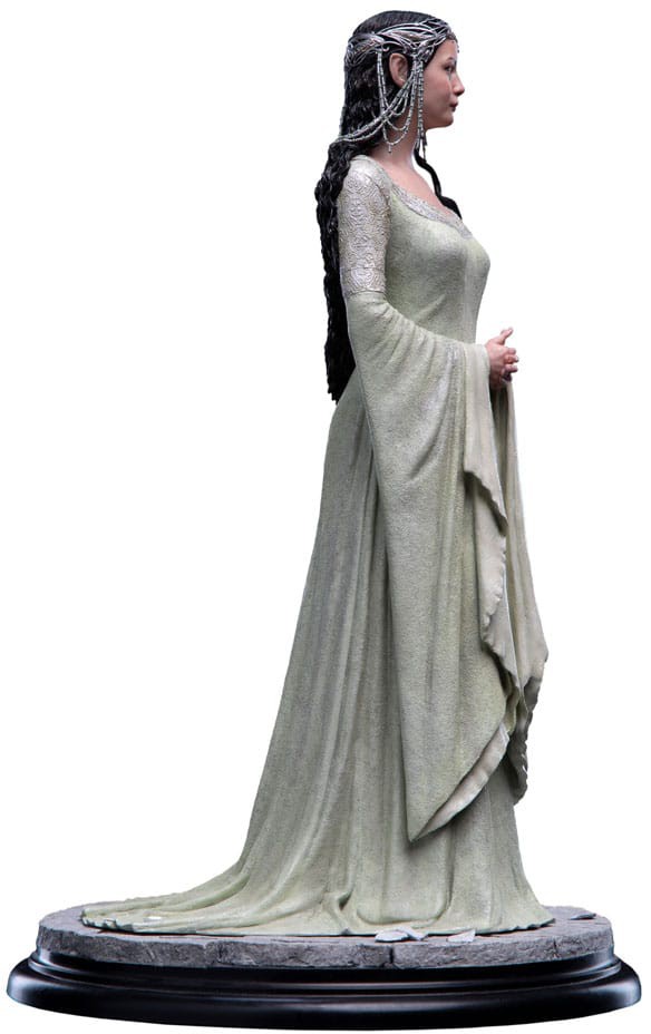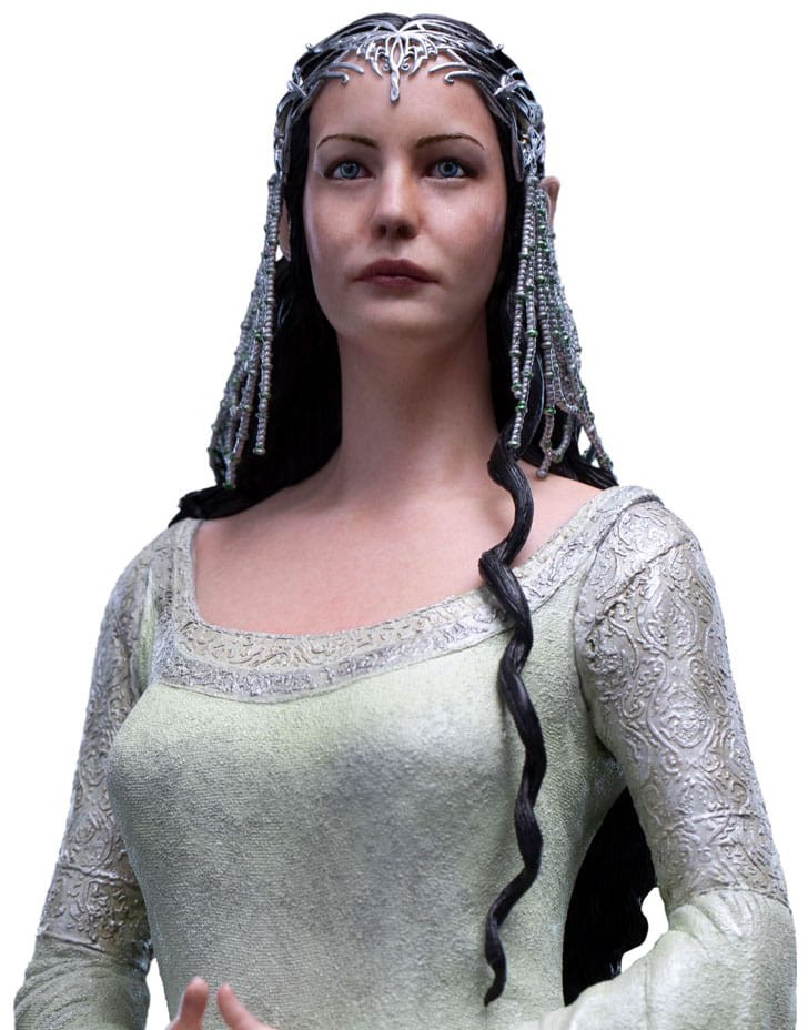 The eternal elf stayed behind, choosing instead to live the life of a mortal with her chosen love. After ages of trials, and the immeasurable weight of sorrow, Arwen, the illustrious elven maiden of Rivendell, now stands at the side of her beloved Aragorn as he reclaims the throne that has long been in abeyance.