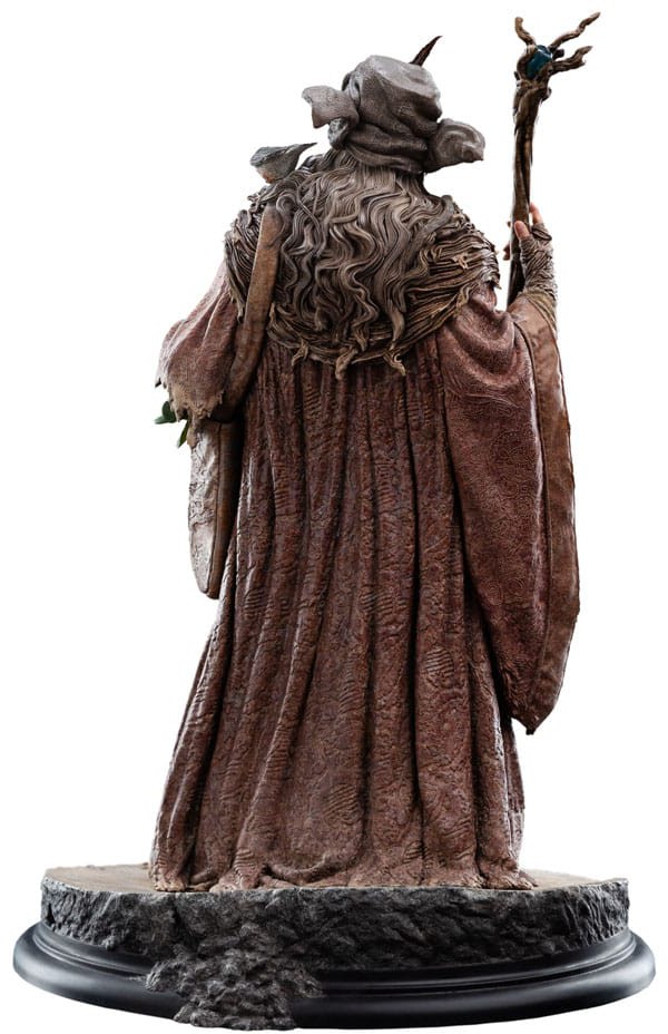 Among the five Istari who were sent to Middle-earth, there was Radagast, a Wizard whose heart was given not to the affairs of Men, Elves, or Dwarves, but to the untamed wilds and the creatures that dwelled therein. A guardian of the natural world, Radagast wandered far from the paths of civilization, finding solace in the songs of birds, the whispers of trees, and the companionship of beasts. Every detail of this statue reflects an extraordinary level of precision and character likeness. Our artists have meticulously recreated Radagast's unique features, from his wild mane and weathered robes to the subtle nuances of his enigmatic expression. The statue is a testament to our dedication to authenticity, with costume details faithfully rendered from direct references to the actual physical costume worn in the films.