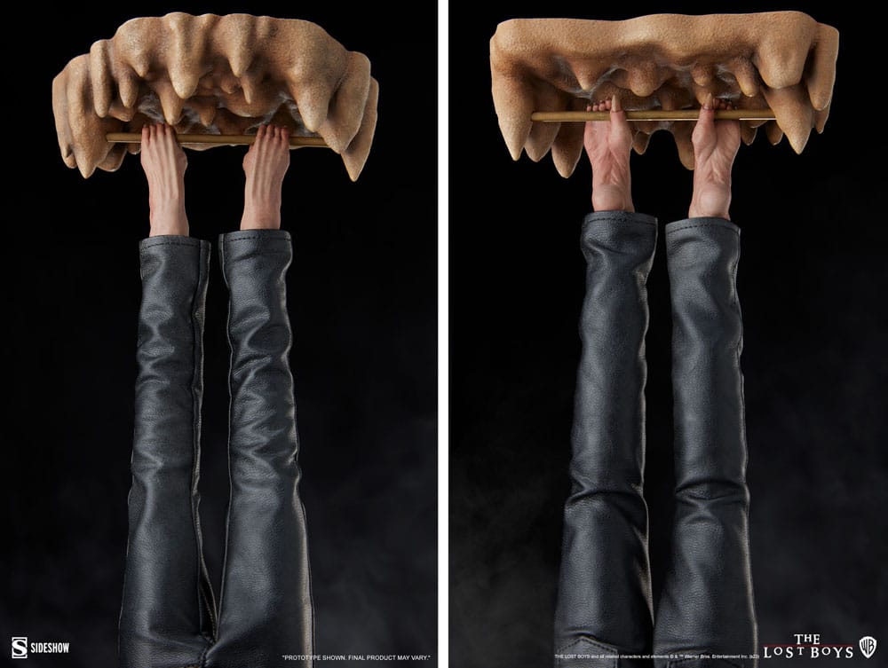 We've been aware of some very serious vampire activity in this town for a long time - just ask the Frog Brothers. To give collectors even more display options for their undead troublemaker, the figure features swap-out feet including David's spurred boots, bare clawed feet, and a third option of bare feet for hanging upside down. David can be displayed upside down on the figure stand and comes with a cave ceiling accessory that attaches to the hanging feet to create this gravity-defying, monstrous pose. Fans won't want to miss this comprehensive horror action figure as the ultimate souvenir from a trip to Santa Carla, California - if they survive.