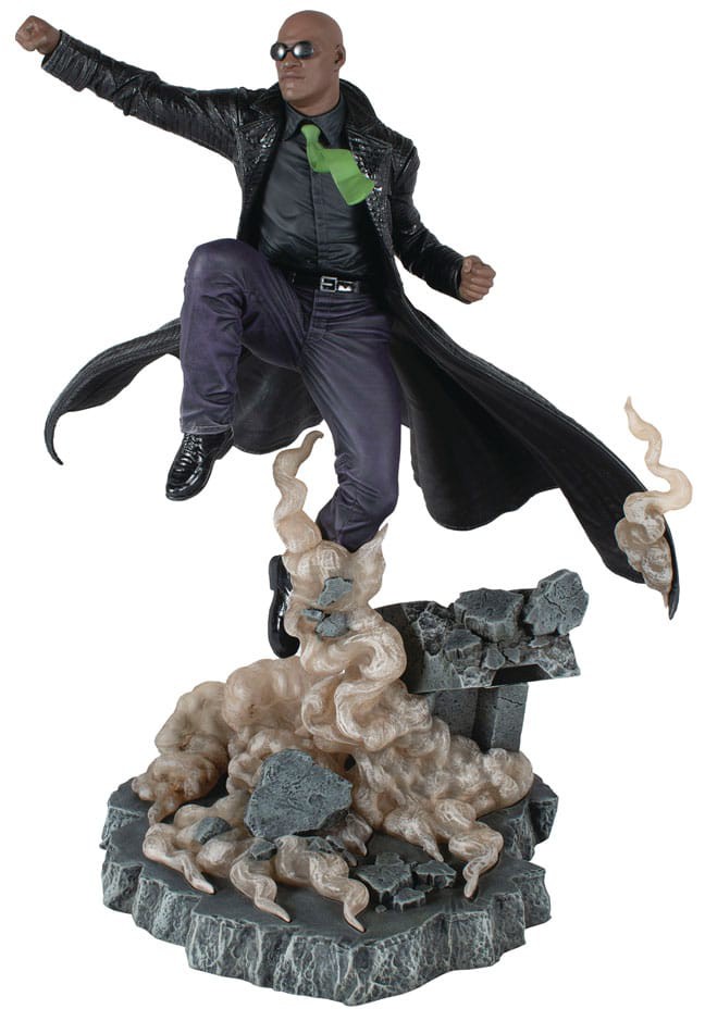 There is no spoon! Morpheus rises to battle The Matrix in this second piece in the Matrix Galley Diorama series! Depicting the resistance fighter leaping from the ground to deliver a deadly attack, this approximately 12" sculpture is made of high-quality PVC and features detailed sculpting and paint applications. It comes packaged in a full-color window box. Designed by Nelson X. Asencio, sculpted by Jorge Santos Souza!
