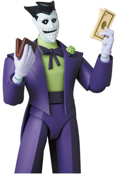 Nästa figur i Medicoms Miracle Action Figure EX (MAFEX) lineup är Joker från TV-serien "The New Batman Adventures". Den är ca. 16 cm lång och levereras med tillbehör och utbytbara delar i en fönsterkartong.