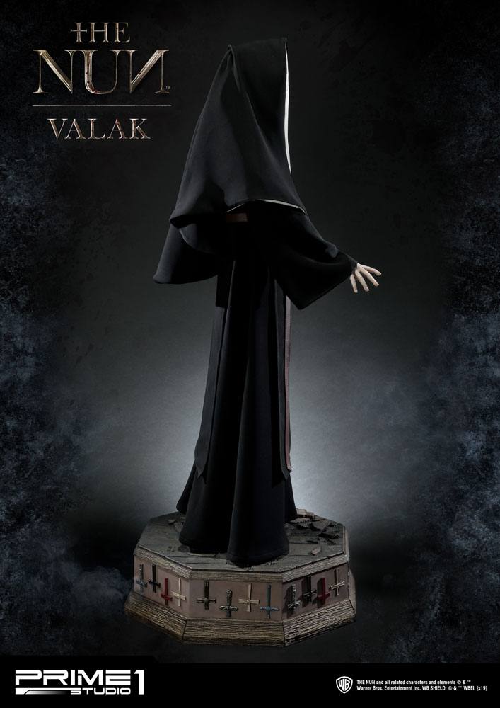 Statyn är 114 cm lång från botten av basen. Valak har en mycket detaljerad, typisk religiös dräkt hos romersk-katolska nunnor. Det är ett mycket imponerande stycke som kombinerar nunnakläder, blek hud och demoniska gula ögon. Det har också ett alternativt porträtt med hennes vidöppna mun som visar skrämmande huggtänder.