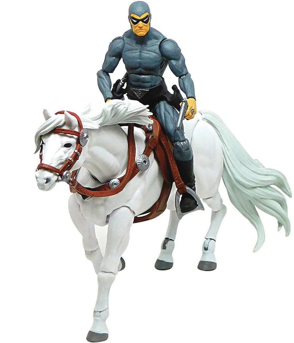 The Ghost Who Walks comes alive in action figure form! Relying on his strength, intelligence, and the myth of immortality, this sleek and stunning figure is ready to fight forces of evil. This Figure and Steed pack includes Phantom and his trusty steed Hero, ready to gallop to the rescue a moment's notice.