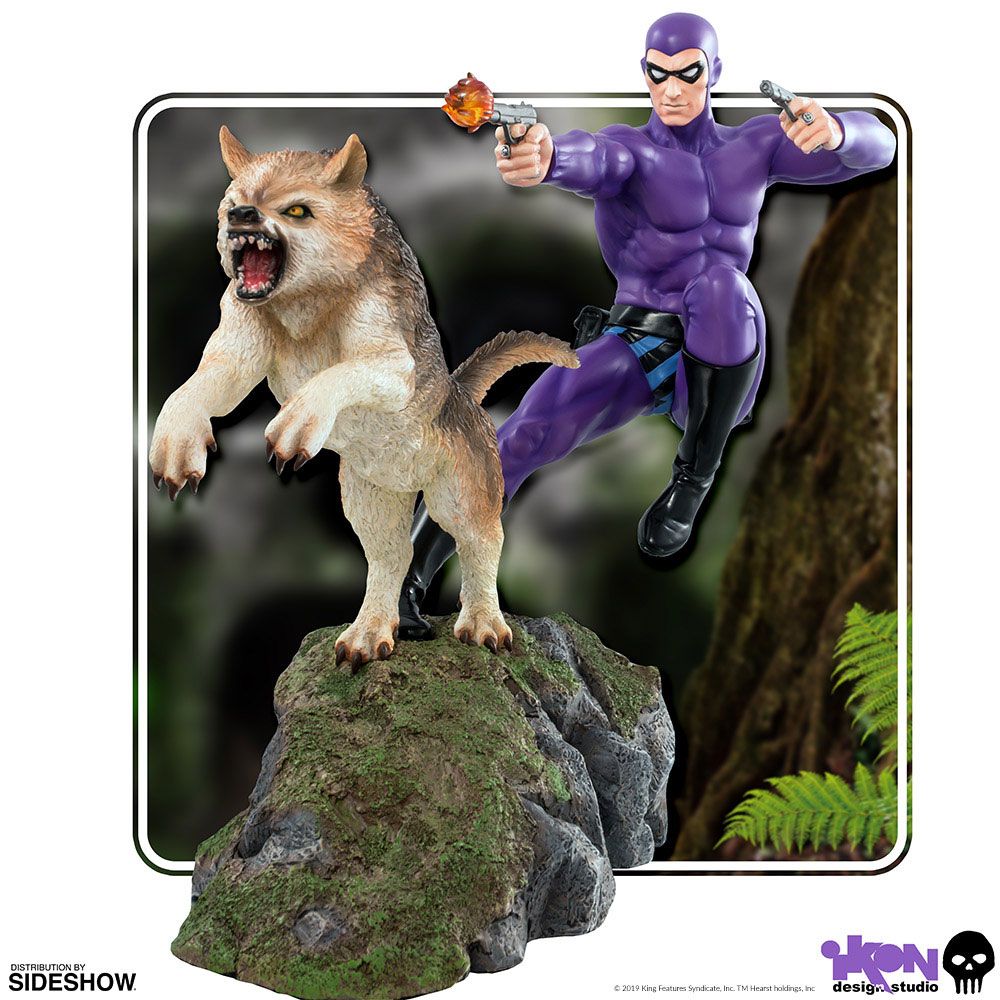 This breathtaking 1:6 scale piece captures every detail of the unforgettable Phantom in the midst of a battle with an unknown enemy. Dual-wielding twin pistols as he and his loyal wolf, Devil, vault over the harsh jungle terrain.