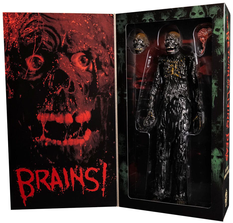 Trick or Treat Studios är stolta över att presentera den officiellt licensierade, The Return of the Living Dead - Tarman - 1:6 Scale Action Figure. Denna fantastiska figur skulpterades från grunden för att ge det mest filmkorrekta utseendet möjligt, med olika material och finish för att verkligen fånga den perfekta, gooey, färsk från tunnan, zombie look. Figuren innehåller 2 utbytbara huvuden och en hjärna; huvudalternativet "BRAINS" är inspirerat av första gången vi träffar Tarman när han ropar efter Tinas "BRAINS! ", under denna scen avbildades Tarman av en docka med ett något annorlunda utseende än kostymversionen av karaktären; och huvudet "MORE BRAINS" är inspirerat av scenen där gruppen ovetande möter Tarman (avbildad av en kostymskådespelare) i källaren när de går för att hjälpa Tina, Tarman utbrister "MORE BRAINS!" efter att ha gjort ett mellanmål av Suicide. Levereras i en vacker samlarlåda med ett fönster som kan vändas bakåt.