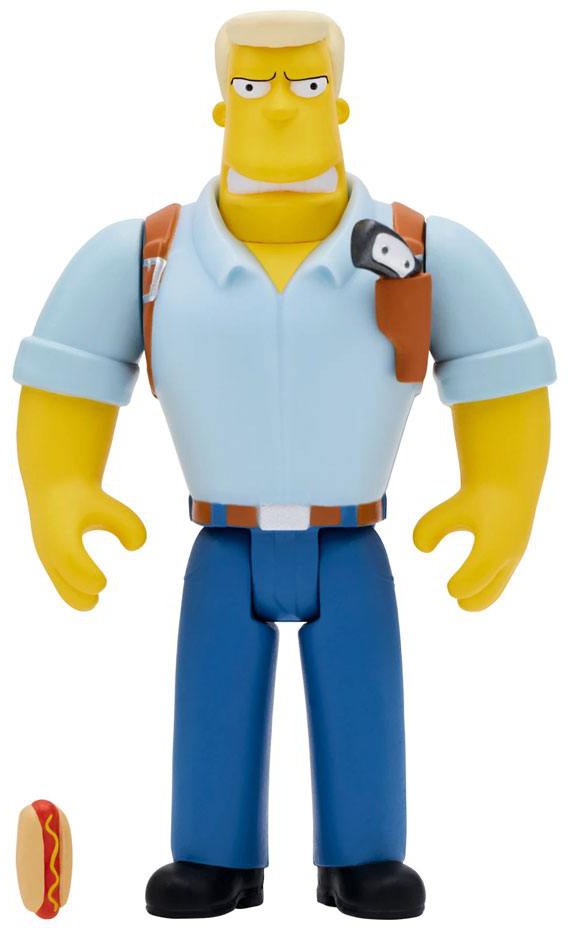 As seen in The Simpsons! This 3.75" articulated McBain ReAction figure shows Detective McBain when all that stood between him and his pension was eating too many "hot-links" (included as an accessory). Collect the entire line of The Simpsons McBain ReAction figures!