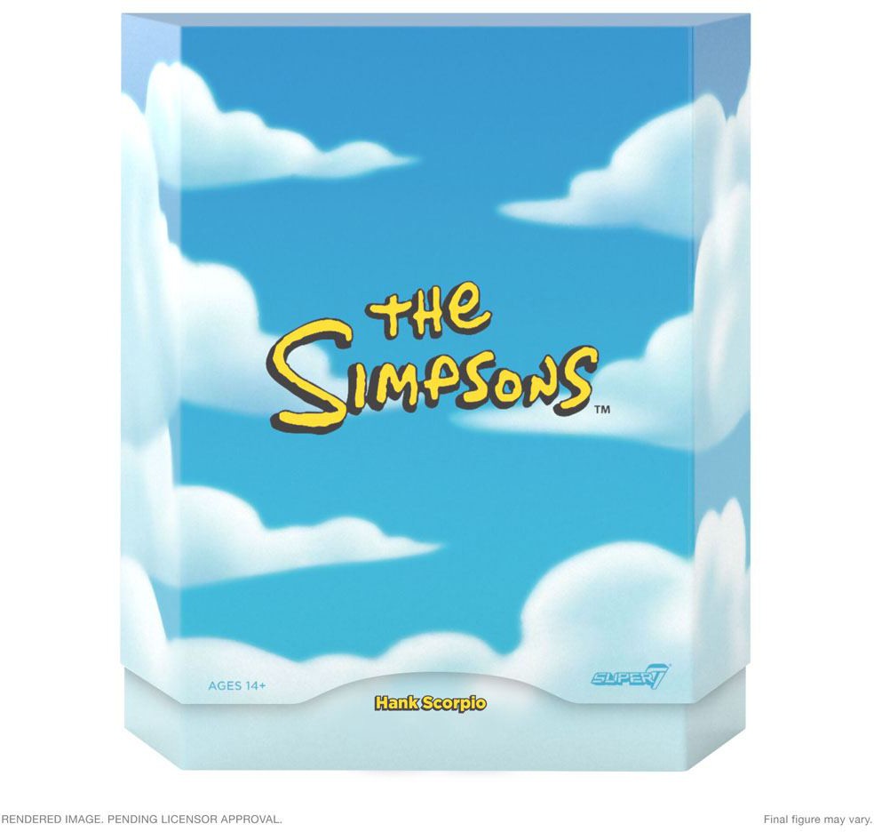 Hank Scorpio från The Simpsons kommer som ULTIMATES! actionfigur! Ledad och detaljerad och kommer med flera tillbehör som utbytbara händer och huvud.