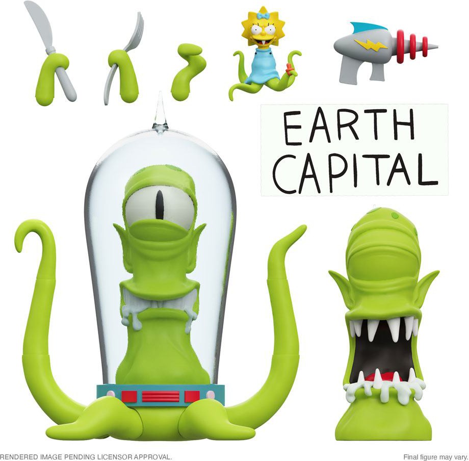 Prepare for probing questions about how you managed to get the Kang ULTIMATES figure! This 8" highly articulated ULTIMATES! figure of Kang, as seen on The Simpsons, comes with interchangeable heads & tentacle tips and a variety of accessories including a ray gun, Alien Maggie, and an "Earth Capital" hitchhiking sign. You need to get this made-to-order The Simpsons ULTIMATES! figure of Kang before it returns to Rigel VII and the endless void of unordered collectibles regret!